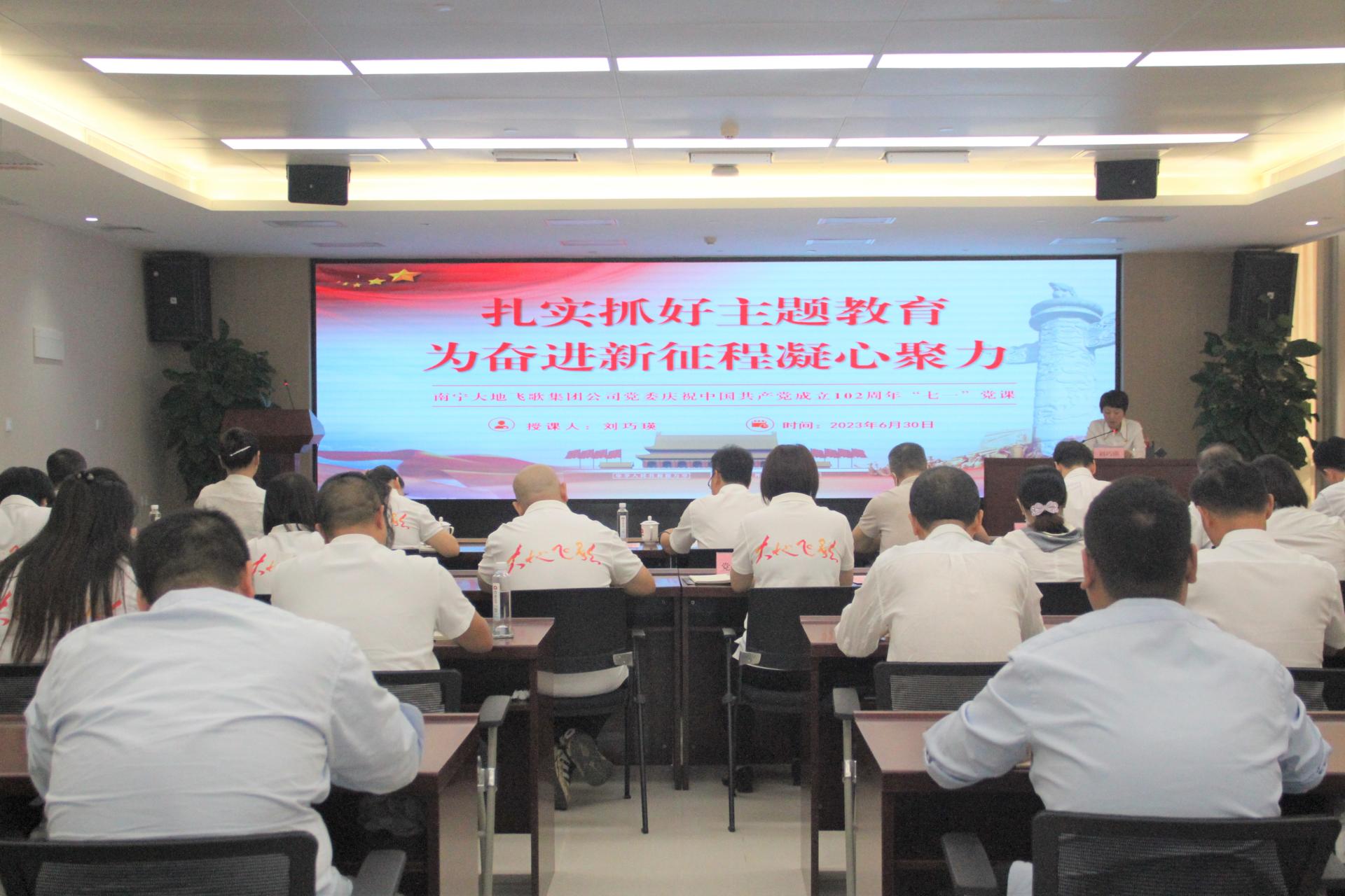 2023年6月30日,南宁大地飞歌集团庆祝中国共产党成立102周年大会在C7(中国)总部大厦5楼501会议室召开。大会举行重温入党誓词仪式,开展“党内关怀帮扶”自愿捐款活动,集团党委书记、董事长刘巧瑛讲授学习贯彻习近平新时代中国特色社会主义思想主题党课。集团党委副书记、总经理蔡焕雄主持会议。“我志愿加入中国共产党,拥护党的纲领……”面对党旗,全体党员高举右手,宣誓铿锵有力,重温共产党的使命和宗旨,传达出了...