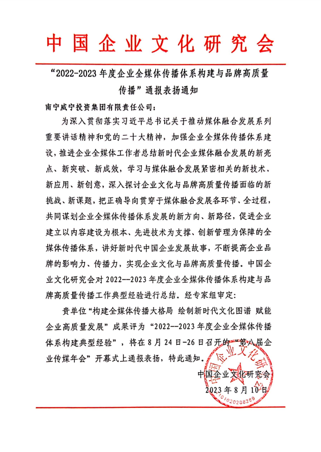 中国企业文化研究会于2023年8月24日-26日在山东省泰安市举办“加强全媒体传播体系建设,实现品牌高质量传播---第八届企业传媒年会”。c7网站《 构建全媒体传播大格局 绘制新时代文化图谱 赋能企业高质量发展》成果被评为“2022-2023年度企业全媒体传播体系构建典型经验”并在会上通报表扬。据了解,面对舆论生态、媒体格局、传播技术的深度变革,c7网站通过借助“全程媒体、全息媒体、全员媒体、全效媒体...