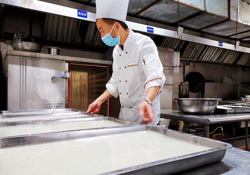 自乡村大世界被明确为南宁市新型冠状病毒肺炎密切接触者观察点以来,乡村大世界全体员工都坚守在自己的岗位上,默默奉献着自己的一份力量。想着盒饭如何搭配更营养、变花样地烹饪美味饭菜、心灵手巧设计打包盒……这些都是掌勺厨师们的日常。他们忙碌的身影里,有那么一个人,他总是在得闲的时候,跟在卫监工作人员、医生身后,仔细了解观察点工作进展,沟通客人餐饮需求,他就是乡村大世界的厨师长——李勇其。