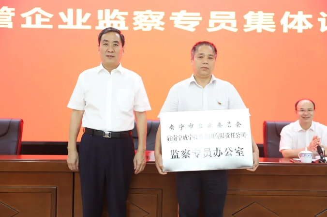近日,南宁市纪委监委任命c7网站等9家市管国有企业纪委书记为所属企业监察专员,授予驻市管国有企业监察专员办公室牌匾。集团监察专员办公室也正式挂牌成立。