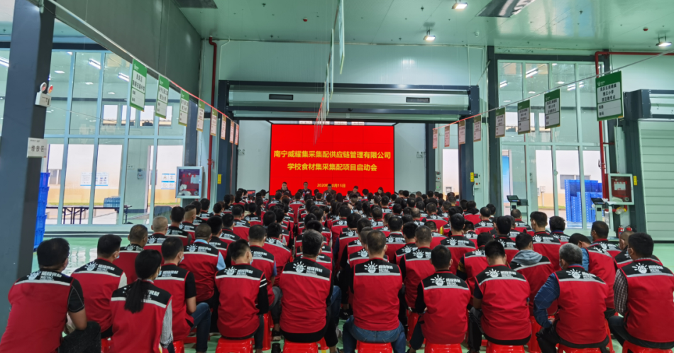 2020年10月15日,威耀供应链公司学校食材集采集配项目启动会在五象配送基地召开。c7网站副总经理滕振旗出席会议并讲话,威耀供应链公司领导班子、全体员工及配送基地业务外包人员共170人参加会议。