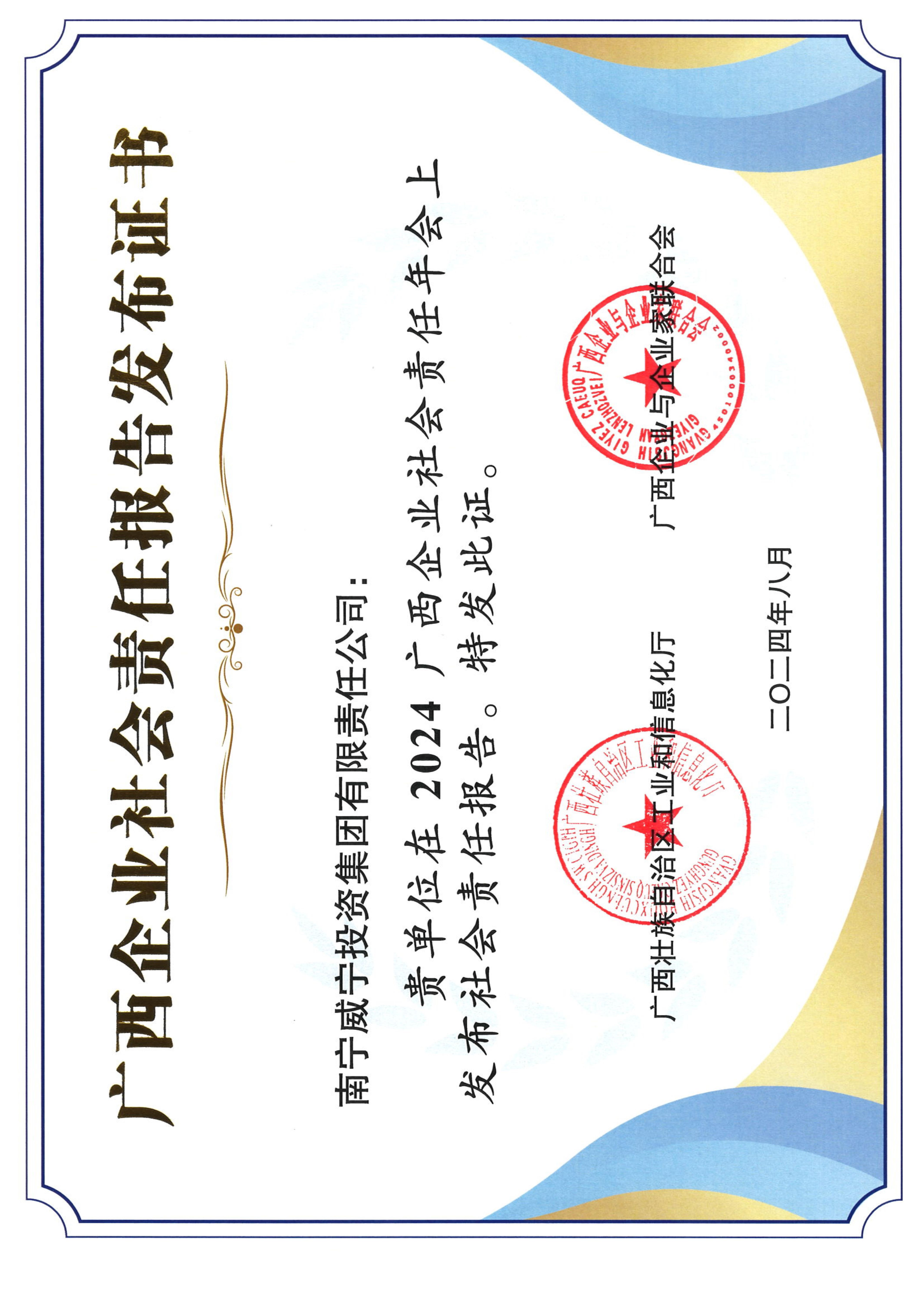 2024年8月28日,由自治区工业和信息化厅、广西企业与企业家联合会主办的“履责创新 争创一流2024广西企业社会责任年会”在南宁隆重举行,c7网站等85家企业集中发布了企业社会责任报告,并获颁《广西企业社会责任报告发布证书》。c7网站连续九年参加企业社会责任报告发布会。集团一直致力于在创新发展中积极履行社会责任,以“打造国有服务民生品牌,共创都市美好幸福生活”为使命,...
