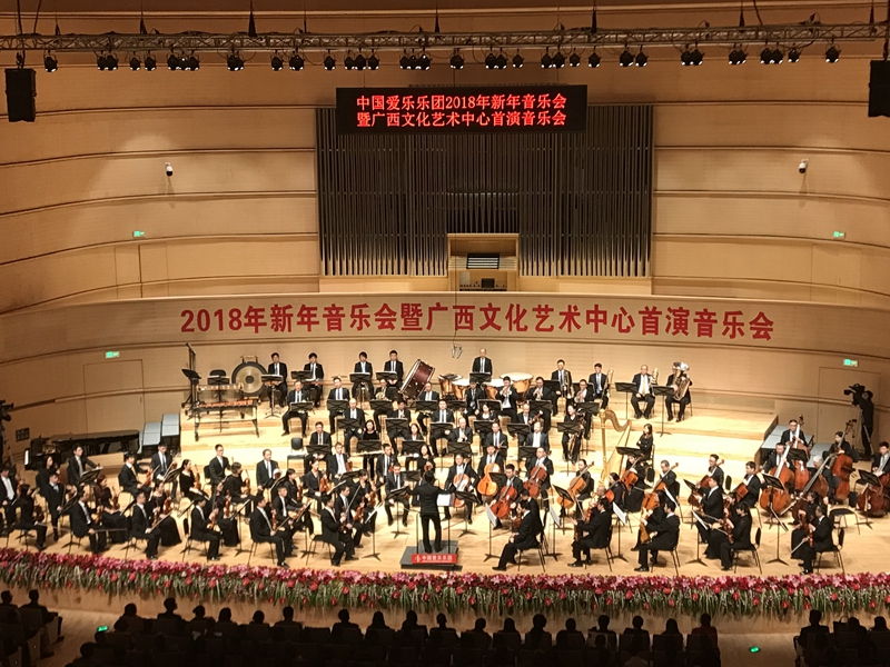 高雅艺术放华彩,音乐盛会贺新年。1月3日晚,2018年新年音乐会在新落成的广西文化艺术中心音乐厅举行,这是该中心竣工后首次举行公演。