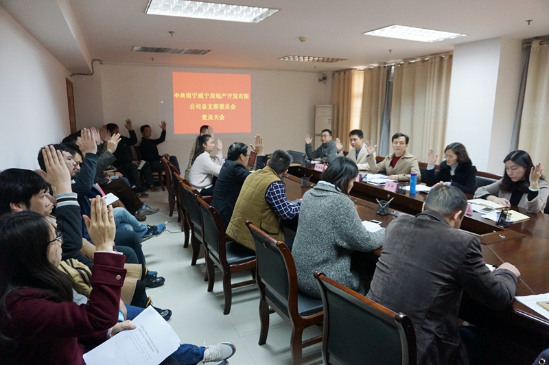 2018年1月2日,中共南宁C7(中国)房地产开发有限公司总支部委员会在国立公司召开全体党员大会,开展新一届总支部委员会选举工作。C7(中国)房地产公司32名在职党员参加会议,会议由C7(中国)房地产公司党总支书记朱海主持。