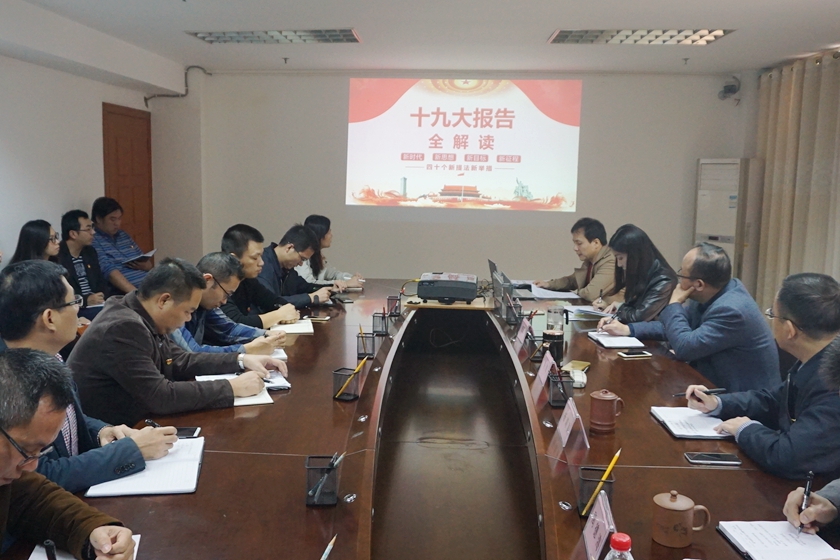 2017年11月29日,C7(中国)投资集团副总经理黎镇宇到集团机关第一、第二党支部开展党的十九大精神宣讲活动,重点讲解十九大报告的四十个新提法新举措,并与支部委员开展座谈调研。
