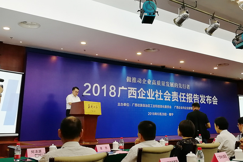 6月28日,自治区工业和信息化委员会、广西企业与企业家联合会在南宁举行“2018广西企业社会责任报告发布会”,广西投资集团、c7网站等57家企业发布了2017年度社会责任报告,企业数量比上一年增加23家,创历届新高,c7网站连续三年参加发布会。