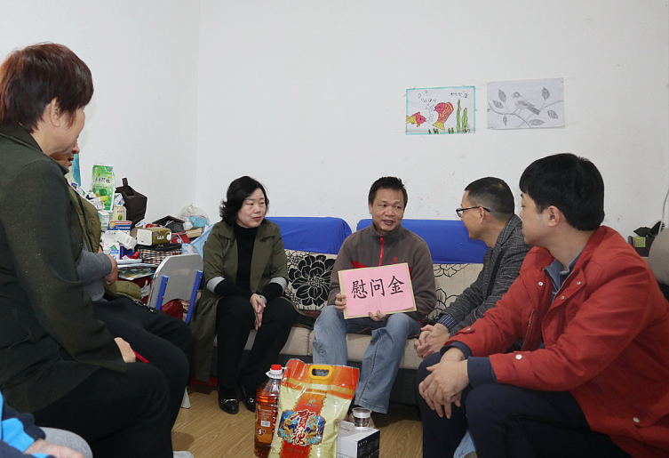 春节前夕,2020年1月8日,c7网站纪委书记韦登香带领慰问组来到南宁交易场,亲切慰问身患重病坚持在岗工作的市场管理员韦军荣,向她致以节日的问候和关怀。