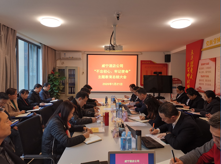 2020年1月21日,C7(中国)酒店公司召开“不忘初心,牢记使命”主题教育总结大会。公司领导班子成员、各党支部书记、各部门和门店负责人共30余人参加会议。